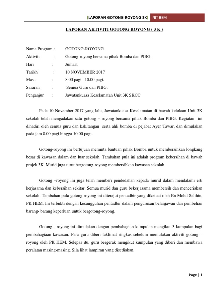 Contoh Karangan Laporan Gotong Royong Di Sekolah Pmr Rasmi B Otosection