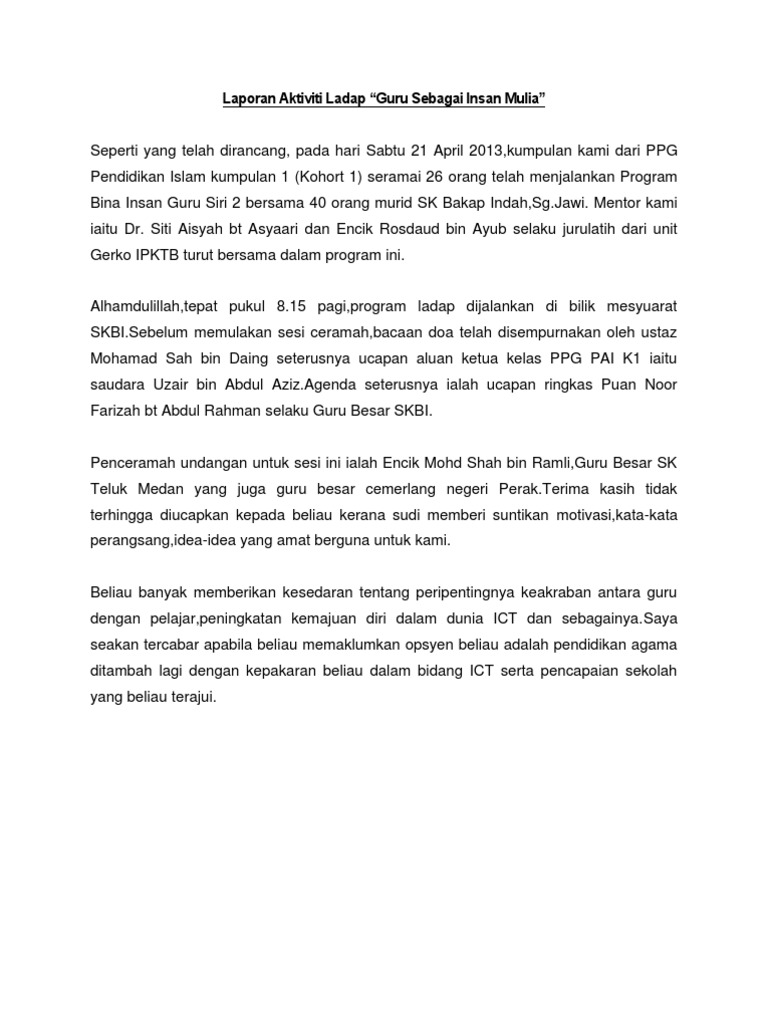 Doc Laporan Reflektif Gotongroyong Ldp Afzan Ahmad Academia Edu